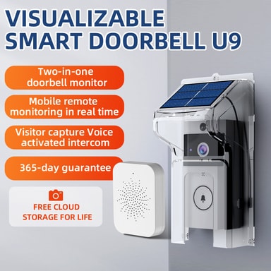 Sanntidsovervåking: Opplev enestående sikkerhet med U9 Trådløs Videoringeklokke. Dens avanserte bevegelsesdeteksjonsteknologi varsler deg umiddelbart om enhver aktivitet på dørstokken din. Se en direktesending av besøkende direkte fra smarttelefonen din, slik at du aldri går glipp av en levering eller en uventet gjest. Kameraet med høy oppløsning fanger klare bilder, selv i dårlige lysforhold, og gir døgnkontinuerlig overvåking og trygghet. Hold deg tilkoblet og i kontroll, uansett hvor du er.