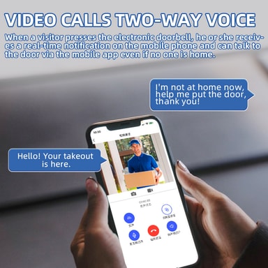 Toveiskommunikasjon: Delta i sømløse toveissamtaler med besøkende ved hjelp av den innebygde mikrofonen og høyttaleren. Enten du er hjemme eller borte, kommuniser tydelig og effektivt med alle ved døren din. Stemmeforandringsfunksjonen gir et ekstra lag med sikkerhet, slik at du kan skjule stemmen din når du snakker med fremmede. Denne funksjonen er spesielt nyttig for å avskrekke uønskede besøkende og beskytte personvernet ditt. Nyt bekvemmeligheten og sikkerheten ved å vite hvem som er ved døren din før du åpner den.