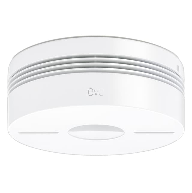 Eve røykvarsler hjelper med å beskytte hjemmet ditt mot brann og røykskader. Røykvarsleren kan monteres på tak eller vegg, og bruker fotoelektrisk røyksensor og varmesensor fra spesialisten Hager, slik at du får pålitelig drift og hurtig varsel av selv skjulte ulmebranner. Med strømsparende Bluetooth-tilkobling har røykvarsleren en batterilevetid på opptil 10 år. I tilfelle brann eller røyk vil røykvarsleren gi fra seg en høylytt, puslerende lyd, i tillegg til å varsle deg via Apple HomeKit. Røykvarsleren sjekker seg også automatisk selv, for å sikre full funksjonalitet over tid. Du kan sjekke røykvarsleren og justere innstillingene med Siri, smartsystemet Apple Home, eller med Eve-appen til din mobilenhet. Du kan plassere flere røykvarslere i forskjellige rom i hjemmet ditt, og koordinere dem gjennom Apple Home.