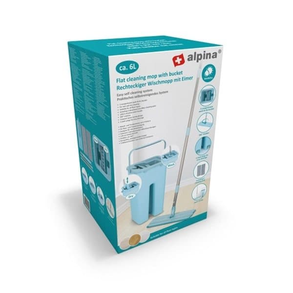Flat mopp / gulvmopp med bøtte og 2 ekstra moppduker. Smidig selvrengjørende system. Farge: blå Volumkapasitet bøtte: ca 6 L Mål: 18 x 21 x 136 cm