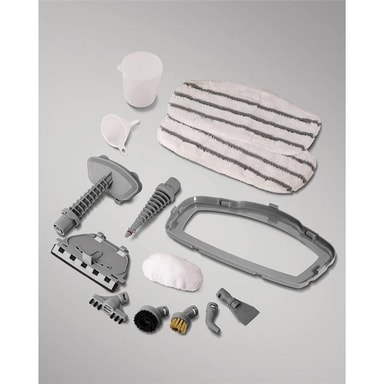 Denne stående og håndholdte dampmoppen vil hjelpe deg med å rengjøre hele huset. Egnede overflater er tette harde gulv, tepper, arbeidsflater, dusjdører, murstein og gips, ovner, ovner og griller, møbeltrekk, kraner og sanitærutstyr. 1500w produserer dampkraft som dreper 99,9% av bakterier rundt i hjemmet, og en 380 ml vanntank og 5 m strømkabel lar deg rengjøre lenge og lenger. Dampmoppen varmes opp på 30 sekunder og har en driftstid på 11 minutter. Dampkontrollknotten kan justere mengden damp opp til 30 g/min. Välj mellan handhållet eller golvmopps-läge beroende på dina behov. Tilbehør som inngår Matt glider • Universal gulvduk (2 stk) • Forlengelsesdyse • Polsterdyse • Klut for dyse dyser • Vindusrengjøringsutstyr • Rengjøring av spalte • Vinklet jet dyse • Rund nylonbørste (1 stk) • Rund messingbørste (1 stk) • Plastskrape • Påfyllingsbeger