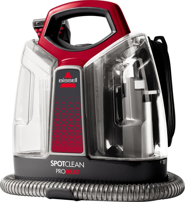 Med flekkfjerneren Bissell SpotClean ProHeat er du godt rustet for uforutsett søl. Den fjerner alle slags flekker fra stoler, møbeltrekk, myke overflater og bilseter takket være den inkluderte grove flekkfjerningsbørsten og rengjøringsmidler.