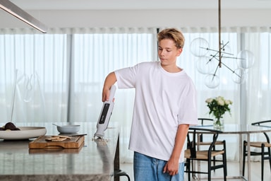 Nilfisk Spot G3 har et kompakt, håndholdt design som gjør den enkel å bruke for rask rengjøring i hjemmet eller i bilen. Den ledningsfrie driften gjør det mulig å bevege seg fleksibelt under rengjøringen, og det medfølgende veggfestet sørger for praktisk oppbevaring og holder støvsugeren klar til bruk.