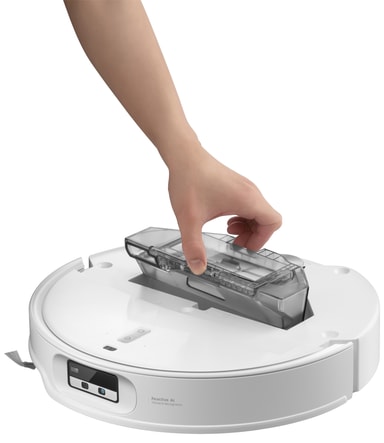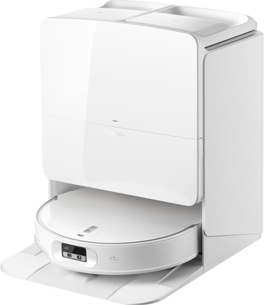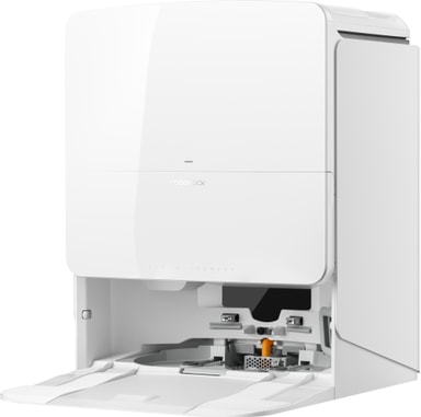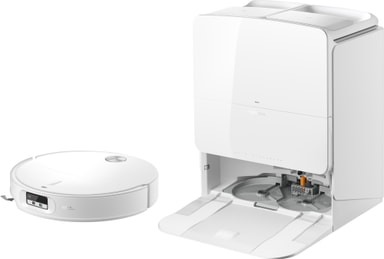 Den multifunksjonelle stasjonen automatiserer vedlikehold ved å tømme støvet, vaske moppen med varmt vann og tørke den med varm luft. Dette bidrar til å opprettholde hygiene og holder roboten klar til neste rengjøringssyklus.