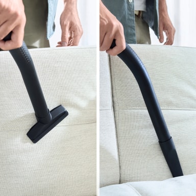 Støvsugeren inkluderer et justerbart gulvverktøy, et munnstykke for harde gulv med myke børster og et ergonomisk håndtak for allsidig og komfortabel rengjøring.