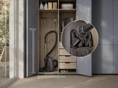 Vår mest kompakte støvsuger som effektivt samler opp støv og skitt på alle overflater – hver gang. AllFloor-munnstykket bytter enkelt mellom hardt gulv og teppe, og tilbehørene oppbevares på støvsugeren, lett tilgjengelig ved behovLes mer om produktet