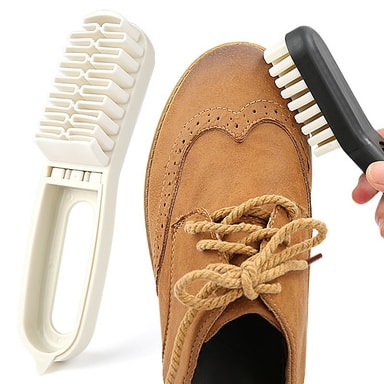 2-i-1 Rengjøringsbørste for Semsket Skinn - Gummi & PP-Bust for Sko, Lær og Semsket Skinn Hvit