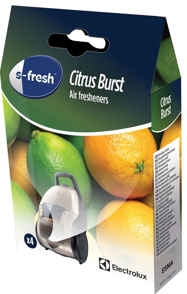 Electrolux s-fresh Citrus Burst luftfrisker til støvsuger ES MA fyller hjemmet ditt med en velduftende lukt under støvsugingen. Pakken består av fire poser som er enkle å bruke, og som fint kan brukes med alle støvsugere.Les mer om produktet