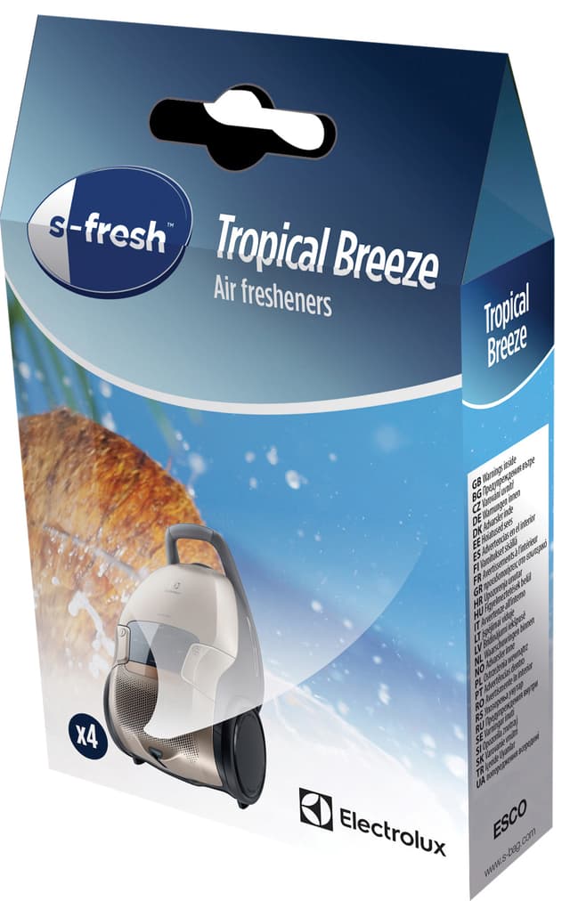 Electrolux s-fresh Tropical Breeze luftfrisker til støvsuger ES CO fyller hjemmet ditt med en velduftende lukt under støvsugingen. Pakken består av fire poser som er enkle å bruke, og som fint kan brukes med alle støvsugere.Les mer om produktet