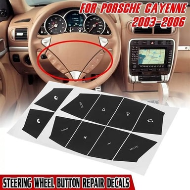 Gi AC-knappene dine et nytt utseende med disse reparasjonsdekaler, spesialdesignet for Porsche Cayenne-modeller fra 2003 til 2006. Dekalene er laget av PVC av høy kvalitet, noe som sikrer lang holdbarhet. Selv om bokstavene og symbolene ikke er helt identiske med originalene, er de perfekte for å reparere slitasje på de originale knappene og gi dem et nytt og friskt utseende.