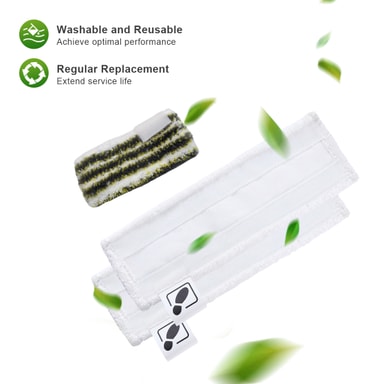 Egnet for Kärcher dampvaskere: Dette settet er spesielt designet for bruk med Kärcher SC1, SC2, SC3, SC4 og SC5 dampvaskere. Pakken inkluderer en dampmoppp, to gulvmopper og en superabsorberende rengjøringsklut, noe som gjør den til et allsidig og uunnværlig sett med rengjøringsverktøy.