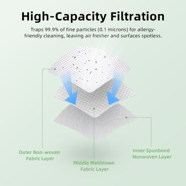 • Fanger effektivt opp fint støv, allergener og rusk for renere luft.