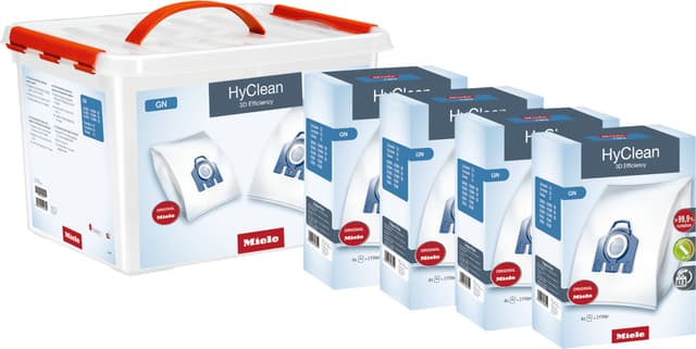- 4 esker med Miele GN 3D støvsugerposer (hver boks inneholder 4 stk støvsugerposer og 1 stk. filter)