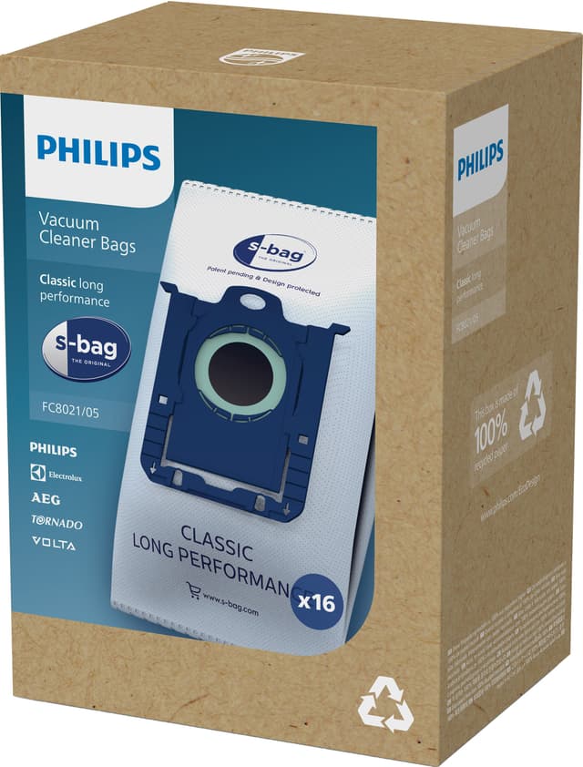 Philips s-bag Classic støvsugerposer FC8021/05 er kompatible med alle støvsugere fra Philips og Electrolux Group. De er laget av syntetisk materiale og inneholder 16 poser med et hygienisk forseglingssystem for enkel avfallshåndtering.Les mer om produktet