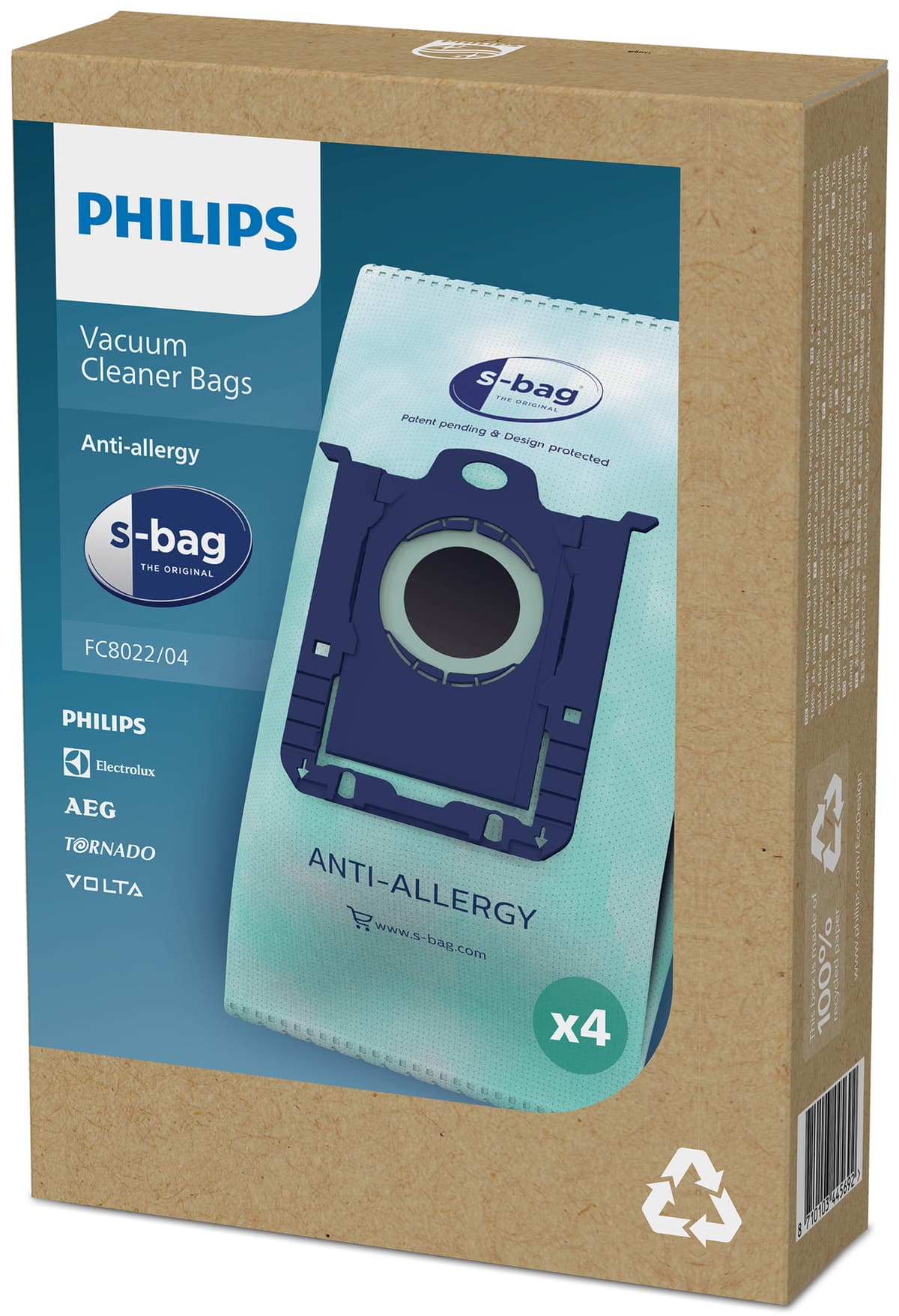 Philips s-bag støvsugerposer FC8022/04 er designet for å filtrere allergener og støv effektivt. Den hygieniske forseglingen hindrer støv i å søl ut når du kaster posen. Denne fire-pakningen passer til alle støvsugere fra Philips og Electrolux.Les mer om produktet