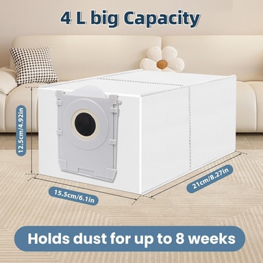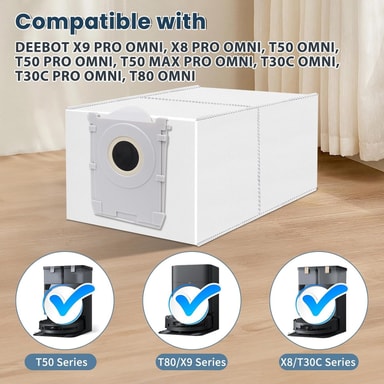 Overlegen støvoppsamling: Disse erstatningsstøvposene er fagmessig utformet for å gi eksepsjonell støvoppsamling, og sikrer at fine partikler og allergener effektivt fanges opp i posen. Dette er avgjørende for å opprettholde et rent og sunt hjemmemiljø, spesielt for personer med allergi eller luftveisproblemer. Den høykvalitets ikke-vevde stoffkonstruksjonen til disse posene maksimerer filtreringseffektiviteten, og forhindrer at støv og rusk slipper tilbake ut i luften under avhending. Kompatibel med Ecovacs Deebot X9 PRO OMNI, X8 PRO OMNI, T80 OMNI, T50 MAX PRO OMNI, T50 PRO OMNI, T50 OMNI og T30C OMNI-modeller.