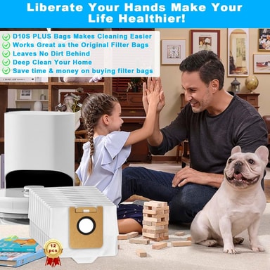 • 12-pakning støvsugerposer kompatibel med Dreame D10 Plus RLS3D - 3L erstatningssett