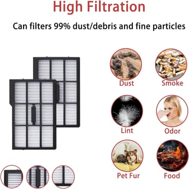 Forbedret rengjøringsytelse: Erstatningsbørstene og filtrene er konstruert for å levere overlegen rengjøringsytelse. Hovedbørstene feier effektivt smuss og rusk fra forskjellige gulvtyper, mens filtrene fanger opp fine partikler og allergener, og forbedrer luftkvaliteten. Sidebørstene når kanter og hjørner, og sikrer en grundig rengjøring i hele hjemmet ditt. Ved å bruke disse høykvalitets erstatningsdelene kan du sikre at din Eufy RoboVac fortsetter å gi eksepsjonelle rengjøringsresultater, og fjerner støv, dyrehår og andre forurensninger effektivt. Dette fører til et renere og sunnere bomiljø. Regelmessig utskifting av filtrene er avgjørende for å opprettholde optimal luftkvalitet.