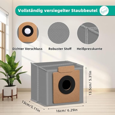 Støvposer med stor kapasitet: Dette ekstra støvpose-settet inneholder 10 støvposer med stor kapasitet, noe som sikrer færre utskiftninger og mindre hyppig tømming. Hver pose kan holde en betydelig mengde smuss og rusk, slik at robotstøvsugeren kan rengjøre i lengre perioder uten avbrudd.