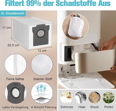 Forbedret rengjøringseffektivitet: Settet inneholder børster, filtre og moppeputer av høy kvalitet som er utviklet for å optimalisere ytelsen til X40 Ultra og effektivt fange opp støv, rusk og allergener.
