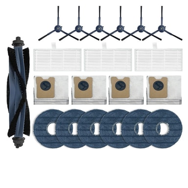 Omfattende rengjøring: Settet inneholder alt du trenger for å holde EUFY OMINI C20 i gang: en hovedbørste, sidebørster, filtre, støvposer og moppekluter.