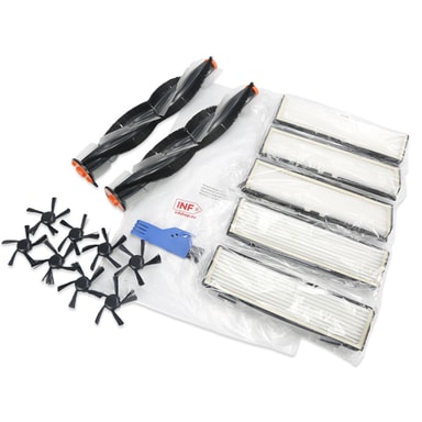 Støvsugertilbehør til Neato Botvac D-serie D75/D80/D85 og koblingsserie D3/D4/D5/D6/D7. Inneholder hovedbørster (børsterulle), støvsugerfilter, sidebørster og et rengjøringsverktøy.
