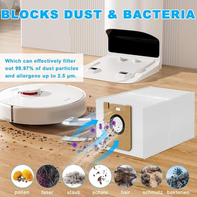 Effektiv støvoppsamling: Disse støvposene er spesielt designet for å gi optimal støvoppsamling for din Dreame D10 Plus, D10s Plus, Z10 Pro eller L10 Plus robotstøvsuger. Med en kapasitet på 3 liter per pose, kan du samle opp betydelige mengder støv, smuss og dyrehår før posen må byttes. Dette reduserer hyppigheten av tømming og vedlikehold, og gir deg mer tid til andre ting. Den høye filtreringsevnen sikrer at selv de minste partiklene fanges opp, noe som bidrar til et renere og sunnere hjemmemiljø. Perfekt for allergikere og husholdninger med kjæledyr.
