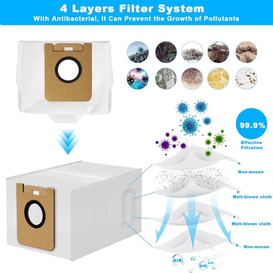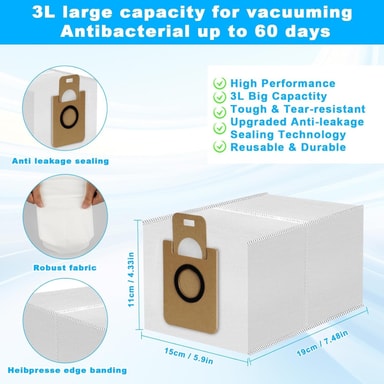 Kostnadseffektiv pakke: Denne pakken inneholder 4 støvposer, noe som gir deg en kostnadseffektiv løsning for å holde din Dreame D10 Plus, D10s Plus, Z10 Pro eller L10 Plus i gang. Ved å kjøpe i bulk sparer du penger og sikrer at du alltid har en reservepose tilgjengelig når du trenger det. Dette er en praktisk og økonomisk måte å vedlikeholde din robotstøvsuger på, og sikrer at den alltid er klar til å takle støv og smuss i hjemmet ditt. Invester i disse kompatible støvposene for å opprettholde et rent og sunt hjem uten å tømme lommeboken.