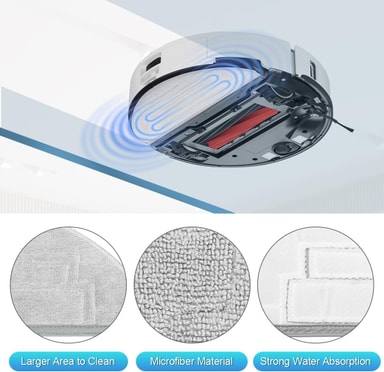 Skinnende rene gulv: De medfølgende 4 vaskbare og gjenbrukbare moppklutene er enkle å feste på robotstøvsugeren og sørger for at du får ekstra rene, polerte gulv.