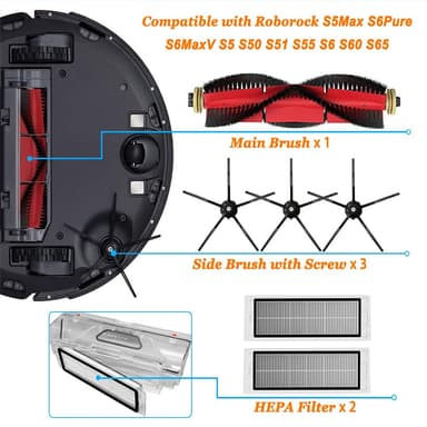 Kompatibel med Roborock: Settet med børster og støvsugerfilter passer for Xiaomi Roborock S5 Max/S6 Pure/S6 MAXV/S50/S51/S55/S5/S60/S65/S6. Reservedelene har perfekt passform og er enkle å montere.