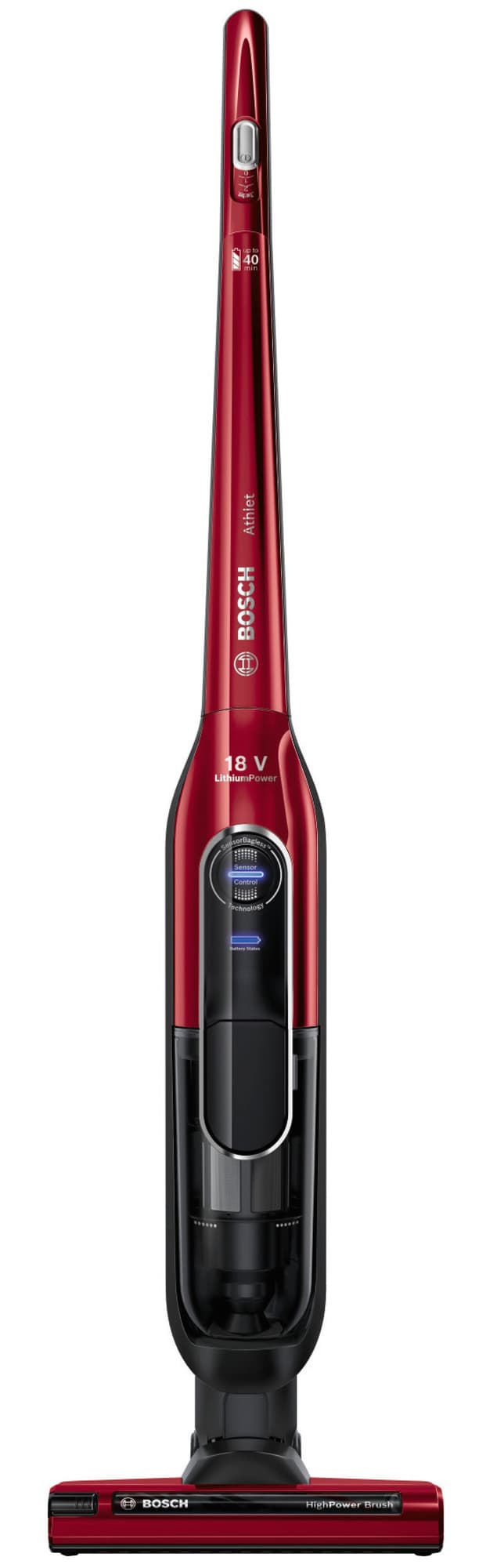 SensorBagless: Bosch Athlet støvsuger bruker ikke støvsugerpose, men har i stedet en 0,9 liter støvbeholder. Beholderen kan hektes av og tømmes på en ekstremt enkelt måte. En LED-indikator vil blinke når beholderen snart er full.