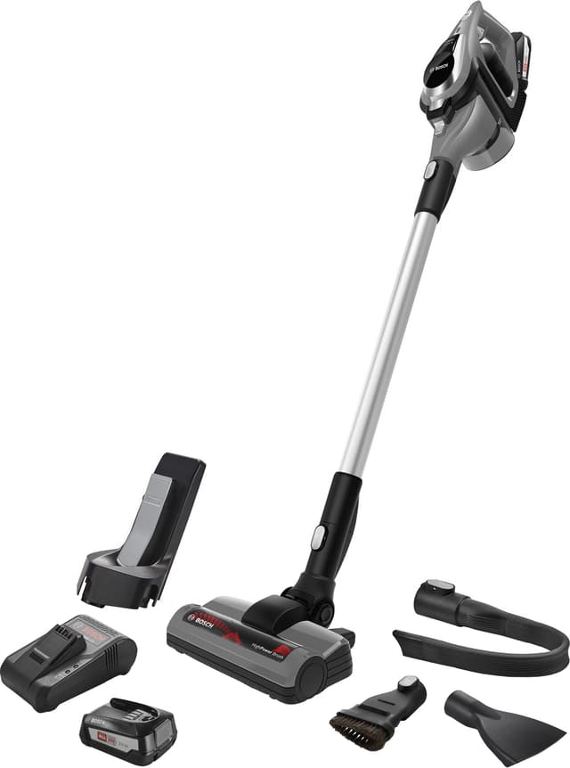 Støvsugeren leveres med en utskiftbar batteripakke, den samme som brukes i Bosch PowerTools. Batteriet er en del av Bosch Home & Garden-serien med 18 volts ledningsfrie produkter.