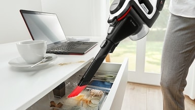 Neste generasjons trådløse støvsugere Unlimited Serie | 8 er nå like sterk som en støvsuger med ledning. Takket være nytt og forbedret batteri, motoren og munnstykket er denne fleksible trådløse støvsugeren nå like sterk som en vanlig støvsuger med ledning*