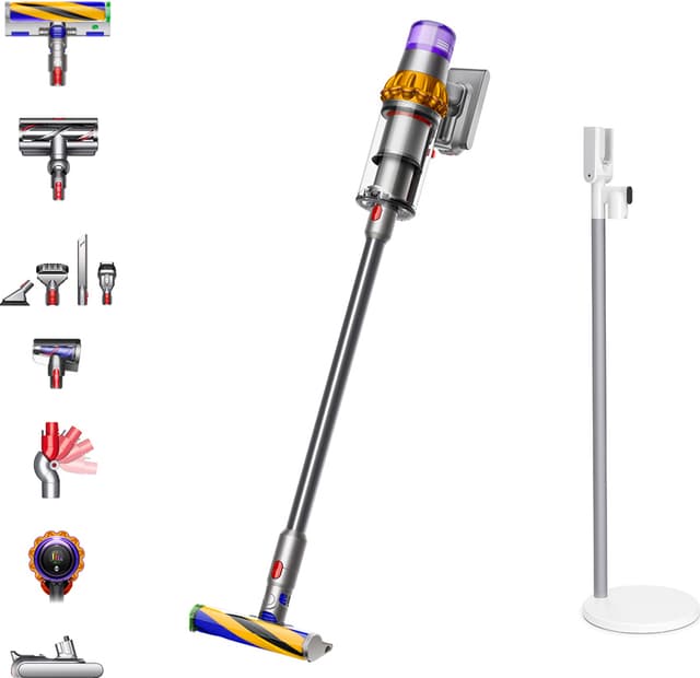 Dyson V15 Detect Absolute trådløs støvsuger med et kraftig batteri, effektiv sugeevne og lasersensorer sikrer at alle gulvene dine er skinnende rene og uten spor av pollen og bakterier. Apparatet justerer automatisk sugekraften etter gulvtype og støvmengde.