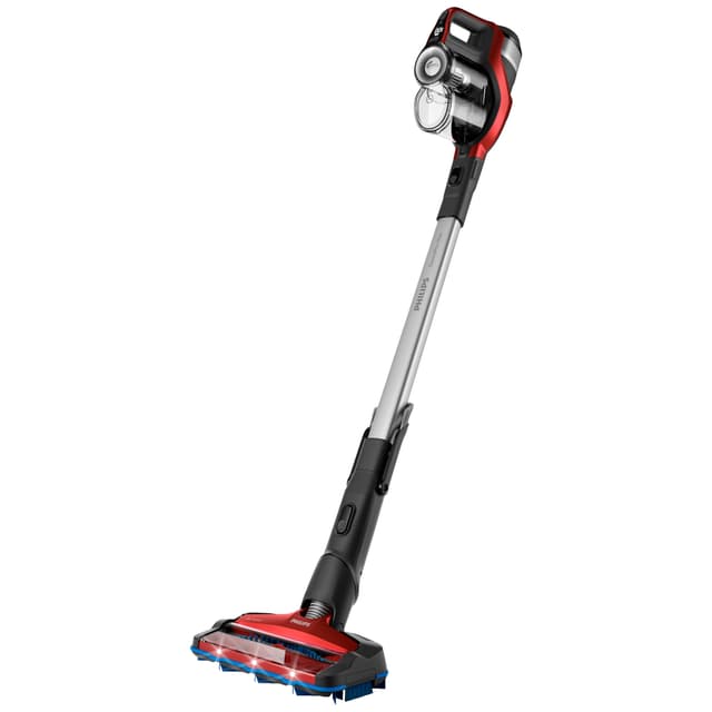 Støvsugeren Philips SpeedPro Max FC682301 har en kraftig PowerBlade motor og et tretrinns filtreringssystem som hjelper deg med å holde huset rent og fritt for både skitt og støv. Den kan brukes i 65 minutter uten å lades takket være det effektive 25 V litium-ion-batteriet, og siden den også leveres med et LED-munnstykke, vil du enkelt oppdage hvilke områder som trenger rengjøring.