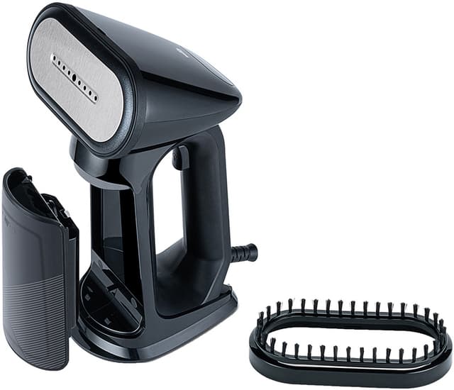 Klesdamperen på 1800 watt er utstyrt med en avtakbar vanntank på 200 ml, noe som gir kontinuerlig damp som effektivt fjerner rynker fra klærne uten behov for hyppig påfylling. Den har også fem programmer du kan velge alt etter stofftype.
