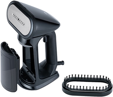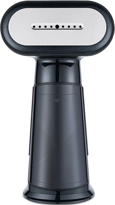 Den kompakte klesdamperen har et elegant, minimalistisk design. Den har intuitive knapper som gjør den enkel å betjene. Den kompakte størrelsen gjør apparatet bærbart og ideelt for raske oppfriskninger og reisebruk. Den kan stå oppreist eller legges flatt på bakken for praktisk oppbevaring.