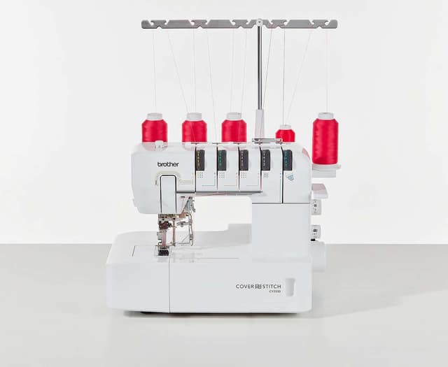 Brother CV3550 Coverstich inkludert 12mm kantbandsapparat. Eneste coverstitch som kan sy Top Cover søm. CV3550 fås med 8mm eller 12mm kantbåndsapparat. denne har 12mm. Den har og kan sy en rekke flatlocksømmer på mange ulike tekstil og stoff, både med dekorative og bruksvenlege sømmer. Funksjoner Coverstitch maskinen kan sy både med enkel, dobbel og trippelsøm, og både smale og breide sting, i tillegg til kjedesting. Eneste Coverstitch med TOP Cover søm, noen som gir 3 stingtypar fleir enn veslebroren CV3440, altså totalt 7. Den har ett ekstra stort arbeidsrom og med en veldig enkel og handy funksjon for justering av trådspenning. CV3550 har friarm, enkel trådkuttar og ett energisparande og skarpt LEDarbeidslys. Den sterke metallantenna sikrer stram og fin søm, og Brothers fargekoda tredning gjør det enkelt å komma igang med å sy. Top Cover søm Sy med opptil trippelsøm Stort arbeidsromFriarm Enkel trådspenningsutløyser LEDlys Trådkutter Hurtig tredning Trykkfotjustering Sterk tråderntenne Utstyr Med denne følger det med 12mm kantbandsapparat. Finst og i utgåve med 8mm kantbåndsapparat. I tillegg er det med nålsett, børste, instruksjonsbok m.m.