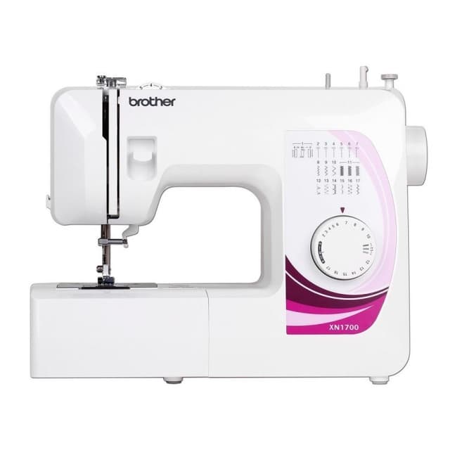 Brother XN1700 Symaskin Brother XN1700 er en godt egnet maskin for de som vil lære å sy. Passermindre syprosjekt og vanlige sybehov. Vekt på 6,5 kg.Funksjoner maskinen er mekanisk og har i alt 17 sømmer, heriblandtdt rettsøm, blindsøm og 4trinns automatisk knapphull. symaskinen har enkel justering av stinglengde opptil 4mm og stingbredde opptil 5mm. XN1700 har ett ekstra høyt syfotlyft og to nålposisjoner. 17 sømmer 4trinns automatisk knapphull høyt syfotlyft Friarm 2 nålposisjoner Snapon trykkføtter Norsk instruksjonsbok Utstyr Følger med flere syføtter, undertrådspolar, nåler og liten skrutrekker m.m