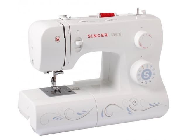 Singer Talent 3323 er ein rimelig, enkel og god modell med 23 sømmer blant anna automatisk 1-stegs knapphull. Både treding, med automatisk nålitreder, og valg av sting gjerast enkelt og raskt, samt at den brukar snap on trykkføttar. Maskinen har justerbar stinglengde, stingbredde, trådspenning og trykkfottrykk. Den er bygd med Heavy Duty metallramme og har friarm. Utstyr: Den har beskyttende vinyltrekk og norsk instruksjonsbok. Det følger med diverse syføtter, synåler, undertrådspoler, sprettekniv, trådsnellestoppar (stor/liten), liten skrutrekkar, kantlinjal m.m.