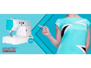 Smarter by Pfaff 260C Smarter 260C er en computermaskin som er enkel i bruk, med alt du trenger av funkskjonar. Funksjoner :maskinen har i alt 27 sømmer, heriblandtdt quiltesømmer, overlocksømmer og 1trinns knapphull. symaskinen har automatisk innstilling av stinglengde opptil 5mm og stingbredde opptil 6mm. LCD skjerm og LED lys for enkel betjening. 260C har nedsenkbar transportør og automatisk feste av tråd. Den har ekstra høyt trykkfotlyft, justerbart trykkfottrykk og gir valfri nålstopp oppe eller nede. symaskinen har innebygd automatisk nålitreder og friarm. 27 sømmer 1trinns automatisk knapphull Innebygd nålitreder Friarm Automatisk trådfeste Valfri nålstopp oppe/nedeJusterbart trykkfottrykk nedsenkbar transportør Trådkuttar Norsk instruksjonsbok Ekstra høyt trykkfotsløft Utstyr Følger med flere syføtter, undertrådspolar, nåler, sprettekniv, kant/quiltelinjal,hardplast koffert, stor og liten trådsnellestopper m.m