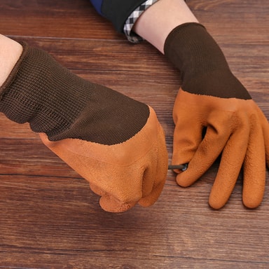 Utmerket grep: Disse hanskene gir et pålitelig grep, takket være deres strukturerte overflatedesign. Enten du håndterer hageverktøy, landbruksutstyr eller bildeler, kan du stole på at hanskene våre gir utmerket trekkraft og kontroll.
