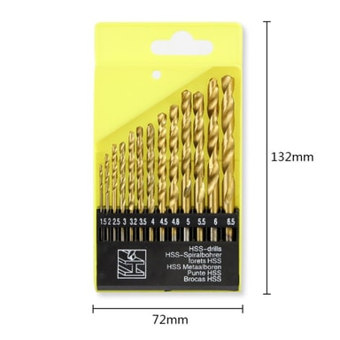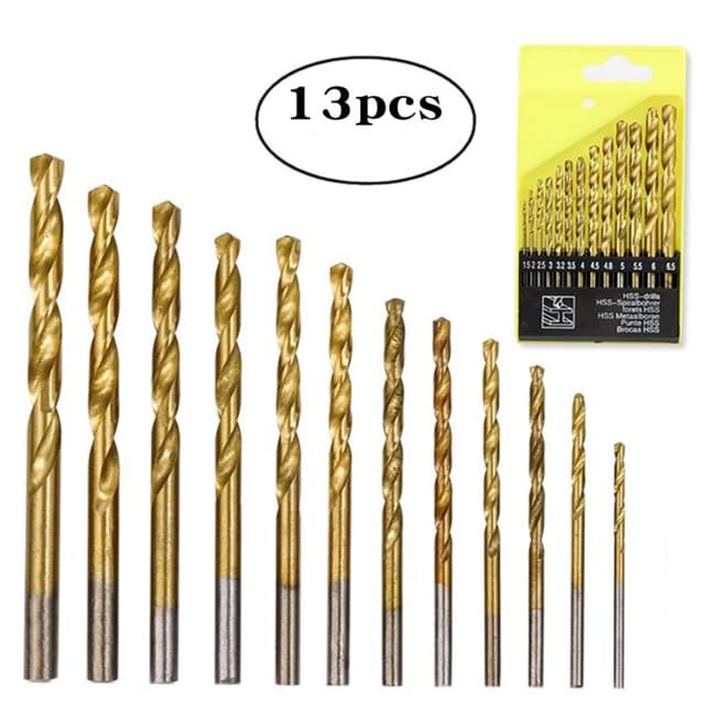 13 stk. HSS Bor Sett - Titanbelagt Rundt Skaft for Tre, Metall og Plastboring