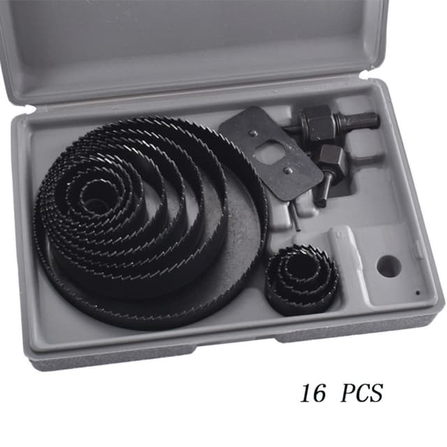 16 stk. hullsagsett i karbonstål er perfekt for å skjære hull i tre, plast og gips. Dette trebearbeidingshullsagbor-settet inkluderer forskjellige størrelser for allsidig bruk. Ideell for gjør-det-selv-prosjekter og profesjonelle applikasjoner.Les mer om produktet
