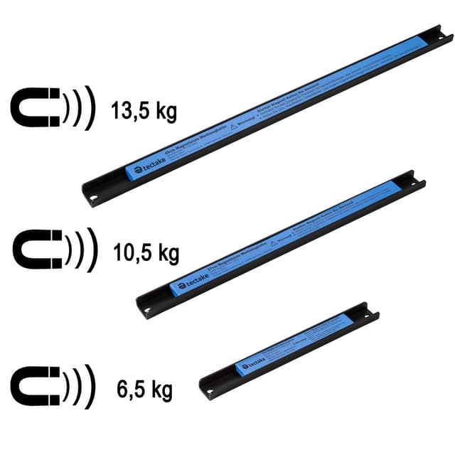 Liker du å ha verktøyene dine godt organisert og alltid til stede? Ikke noe problem med denne praktiske magnetstripen fra tectake. Hammere, sager, tang, vater og skrutrekkere kan enkelt organiseres. Ikke mer uendelig søken gjennom skuffer. Denne lille hjelperen kan bare skrus fast på veggen og vil kunne holde 20 ganger sin egen vekt. Magnetlisten kan til og med inneholde tyngre verktøy eller små pakker med skruer. Dette produktet er perfekt for et verksted eller skur. Bare se opp, strekk ut så har du det rette verktøyet i hånden - takket være denne funksjonelle magnetstripen fra tectake.