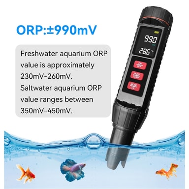 ORP-område: ±999 mV (Oppløsning: 1 mV, Nøyaktighet: ±2 mV)