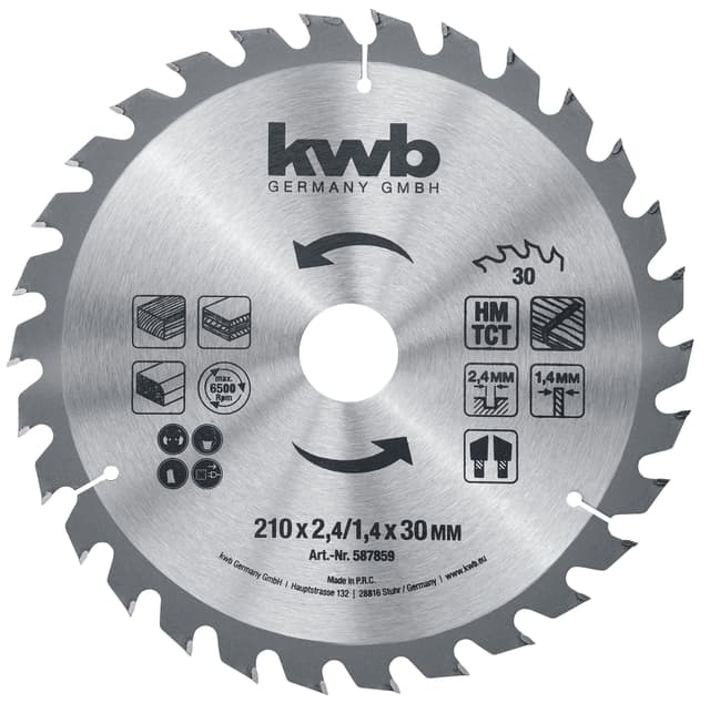 Hårdmetallbestyckad, snabba, rena snitt, normaltänder, för handhållna cirkelsågar. För massivt trä, hårdplattor, spånskivor MDV-skivor, laminat, gipsskivor.