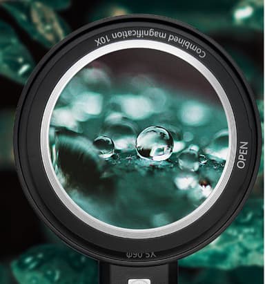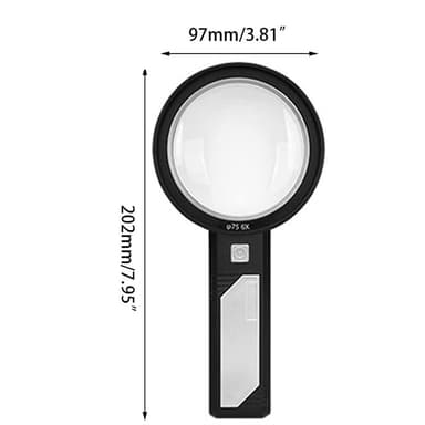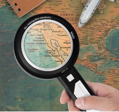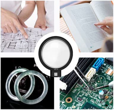 Et forstørrelsesglass med førsteklasses optisk glasslinse, 6 vanlige lys og 2 UV-lys. Perfekt for lettere å lese og se fine detaljer i bøker, blader og gjenstander, selv under dårlige lysforhold.
