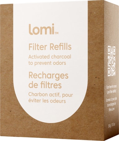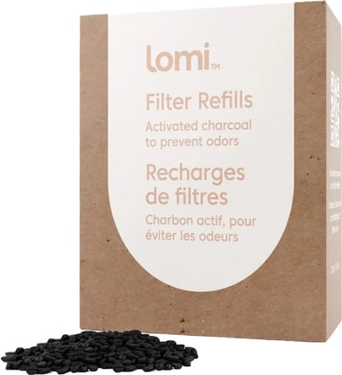 Lomi-Pela filter refill 80150-LOMICHARCOAL bruker aktivt karbon for å fange opp fuktig luft, fjerne gasser og redusere ubehagelige lukter fra matavfall. Bytt filter hver 45. syklus for å sikre at Lomi fungerer optimalt og lukter friskt.Les mer om produktet