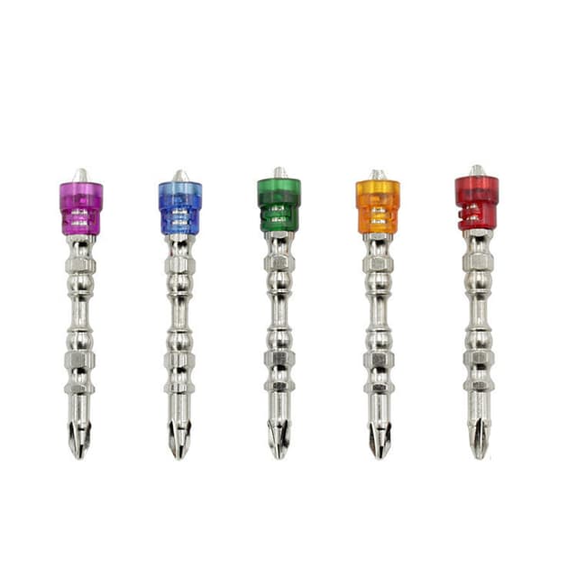 Skrutrekkerbitene er laget av rustfritt stål og har høy hardhet og slitestyrke. Magnetisk kragedesign, hold tverrhodet tett, reduserer glidning og holdbar, enkel å installere og lokalisere gipsskruer.